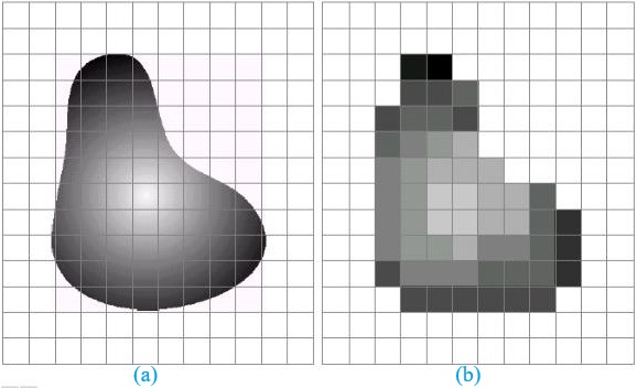 Sampling is the process of converting a continuous-tone image into a discrete form by selecting a finite number of points, called pixels. The sampling process directly affects the spatial resolution of the digital image.