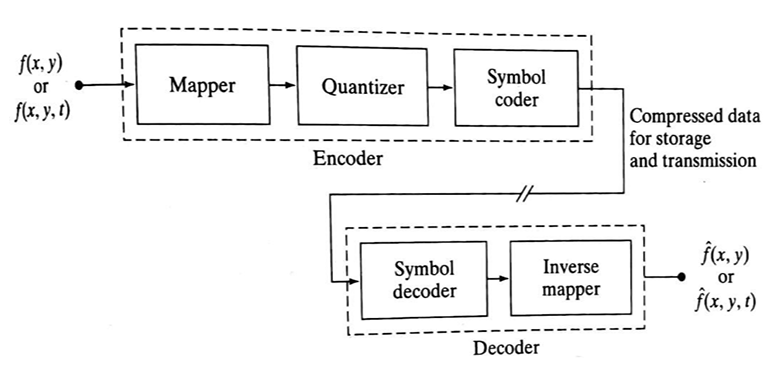 The following figure shows an image compression system is composed of two distinct functional components: an encoder and decoder. The encoder performs compression and decoder performs the complementary operation of decompression. Both operations can be performed in software. Input image is fed into the encoder, which creates a compressed representation of the input. When the compressed representation is presented to its complementary decoder, a reconstructed image is generated.